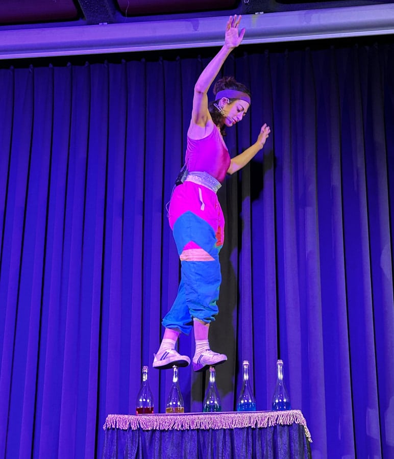 • מיומנויות קרקס ייחודיות שלא תראו בשום מופע אחר, כמו הליכה על בקבוקי זכוכית בשיווי משקל.