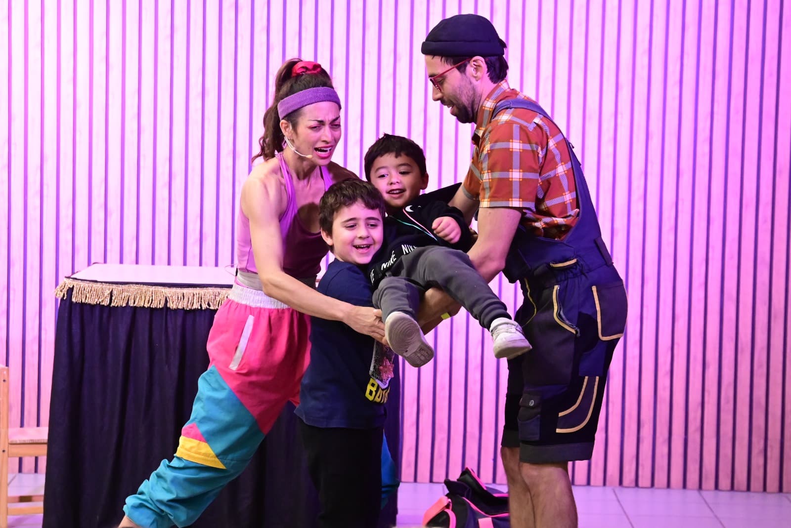 בכל מופע שלנו יש שיתוף קהל, אבל במופע הזה זה קורה בענק: 12 ילדים ועוד שני מבוגרים עולים לבמה והופכים לחלק אמיתי מהמופע.